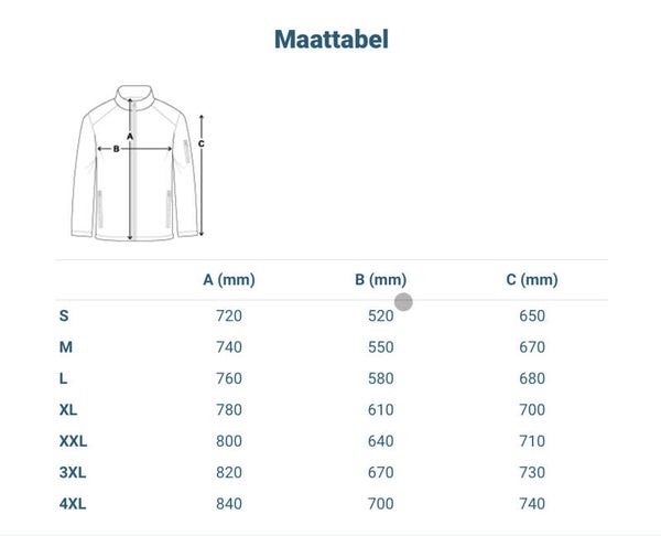 - materiaal: 95% polyester, 5% elastaan (buitenste laag), 8000 mm PU/3000 g/m²/24h